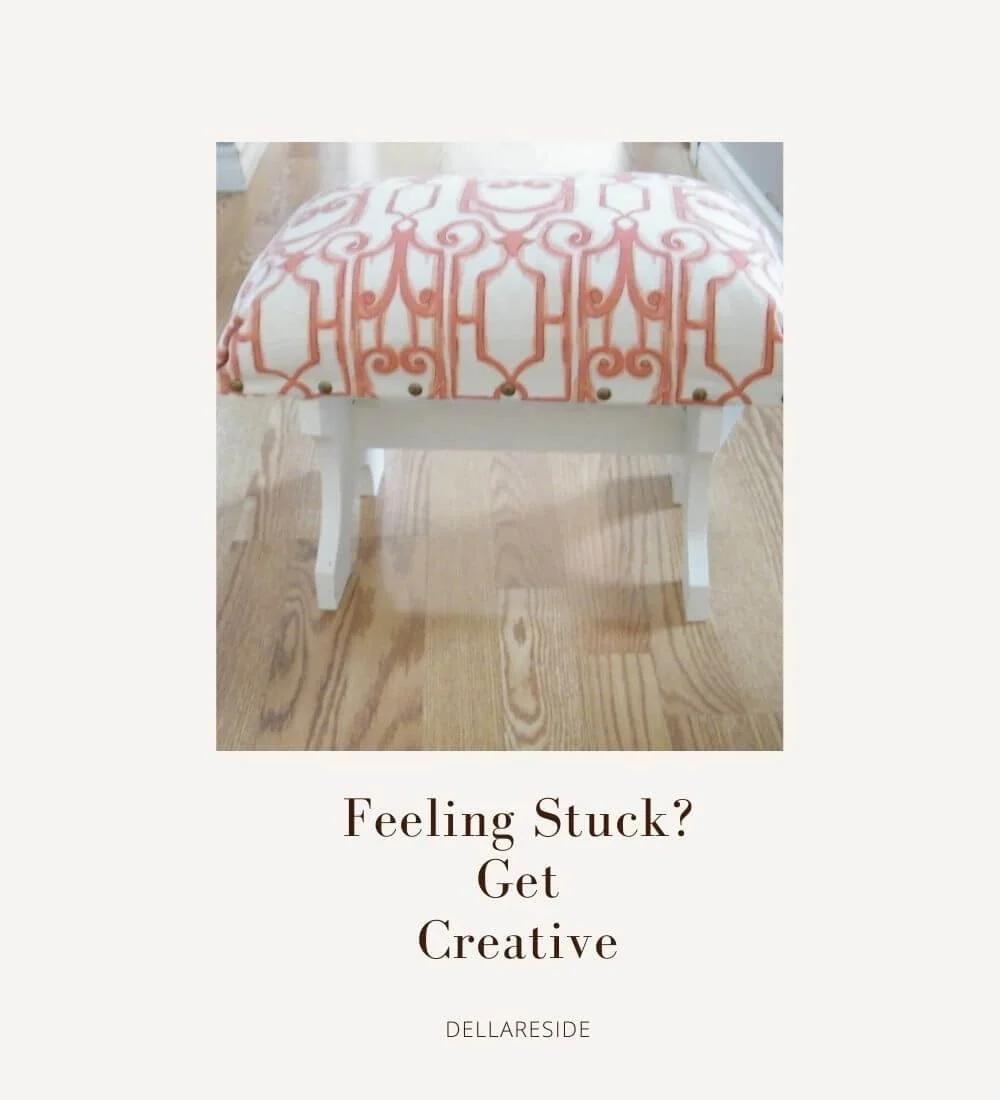 I bet you totally get it; we’ve all been there which is why I wanted to share a way that I recently got myself moving again. It may seem a bit unconventional, but it worked when I couldn’t get unstuck. I got creative and turned a family heirloom into an upholstered footstool. My simple upcycle project activated my sacral chakra and got my creativity flowing again! Even though you may not tackle the same footstool DIY makeover project I did, the tips in this post will help you get creative when you’re feeling stuck.